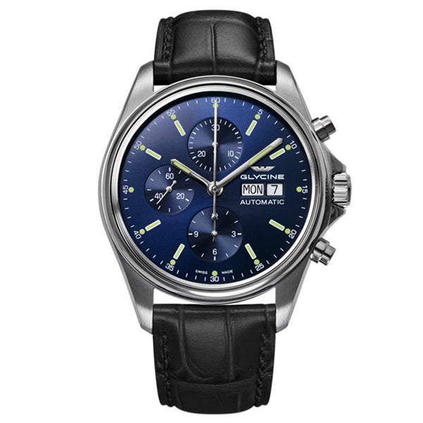 Band for Glycine Combat GL0117, Band Material: Leather Band Color: Black Band Width (mm): 22 Band Length (mm): 200 Buckle Type: Regular