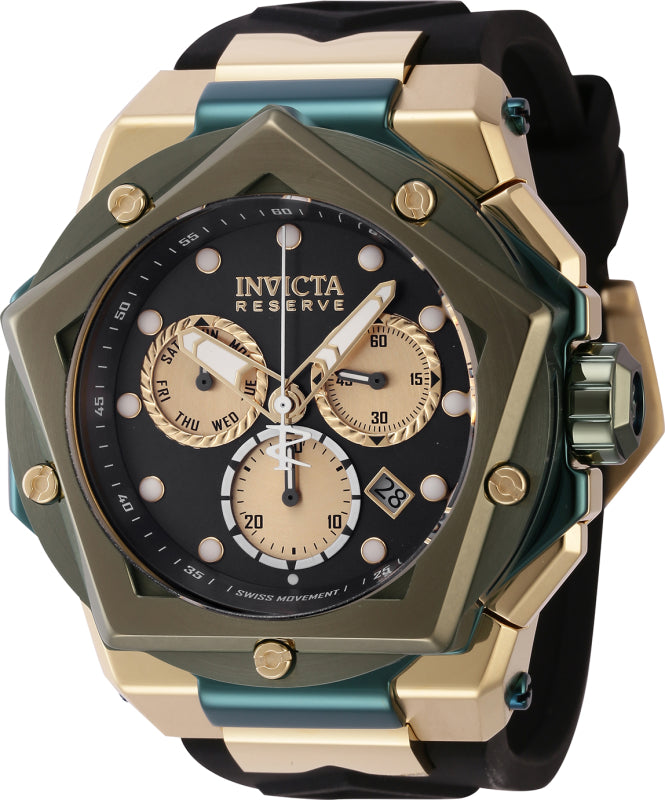 Band Material: Silicone, Stainless Steel, Band Tone: Black, Gold, Band Width: 34.70MM, Band Length: 210MM, Buckle Type: Buckle, Please note that bands do not ship with spring bars or T bars. If you need these parts, please add them to your cart with the corresponding part sku.