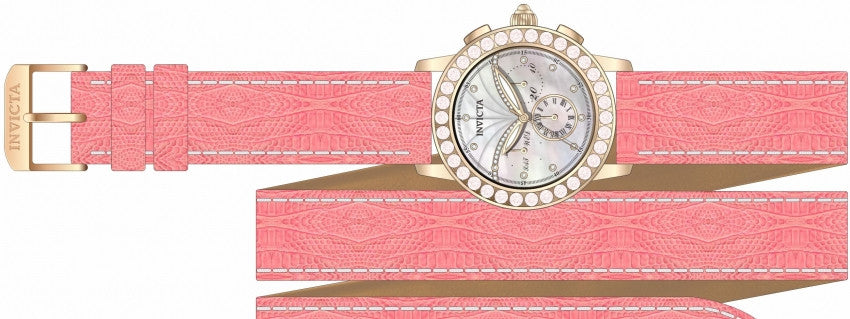 Band For Lady Invicta Angel 20432, Band Material Leather, Band Color Pink, Band Width 20 MM, Band Length 265 MM, Buckle Type Regular, Clasp Type Regular. Please note that bands do not ship with spring bars or T bars. If you need these parts, please add them to your cart with the corresponding part sku.