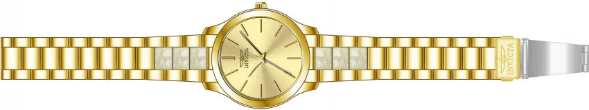 Band For Lady Invicta Angel 20496, Band Material Stainless Steel, Tortoise, Band Color Gold, Pearl, Band Width 18 MM, Band Length 195 MM, Buckle Type Diver, Clasp Type Safety. Please note that bands do not ship with spring bars or T bars. If you need these parts, please add them to your cart with the corresponding part sku.