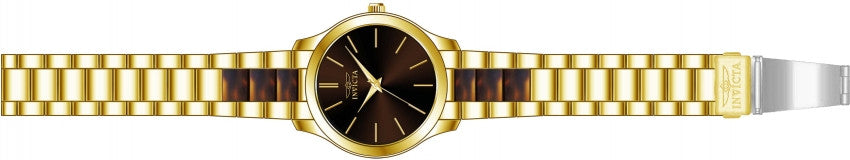 Band For Lady Invicta Angel 20498, Band Material Stainless Steel, Tortoise, Band Color Gold, Brown, Band Width 18 MM, Band Length 195 MM, Buckle Type Diver, Clasp Type Safety. Please note that bands do not ship with spring bars or T bars. If you need these parts, please add them to your cart with the corresponding part sku.