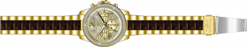 Band For Lady Invicta Angel 20509, Band Material Stainless Steel, Tortoise, Band Color Gold, Brown, Band Width 18 MM, Band Length 195 MM, Buckle Type Diver, Clasp Type Safety. Please note that bands do not ship with spring bars or T bars. If you need these parts, please add them to your cart with the corresponding part sku.