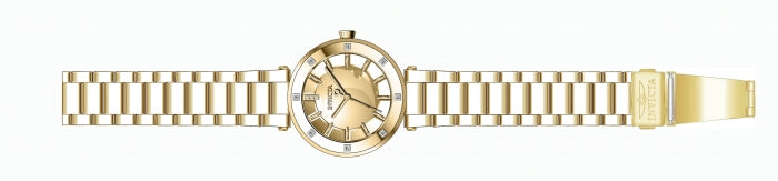 Band for Invicta Angel 23728, Band Material: Stainless Steel, Band Color: Gold, Band Size (in mm): 22, Band Length (in mm): 171, Buckle Type: Regular, Clasp Type: Regular. Please note that bands do not ship with spring bars or T bars. If you need these parts, please add them to your cart with the corresponding part sku.