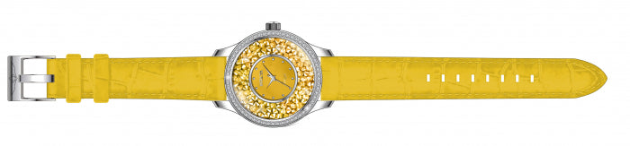 Band for Invicta Angel 24587, Band Material: Leather, Band Color: Yellow, Band Size (in mm): 18, Band Length (in mm): 200, Buckle Type: Regular, Clasp Type: Regular. Please note that bands do not ship with spring bars or T bars. If you need these parts, please add them to your cart with the corresponding part sku.