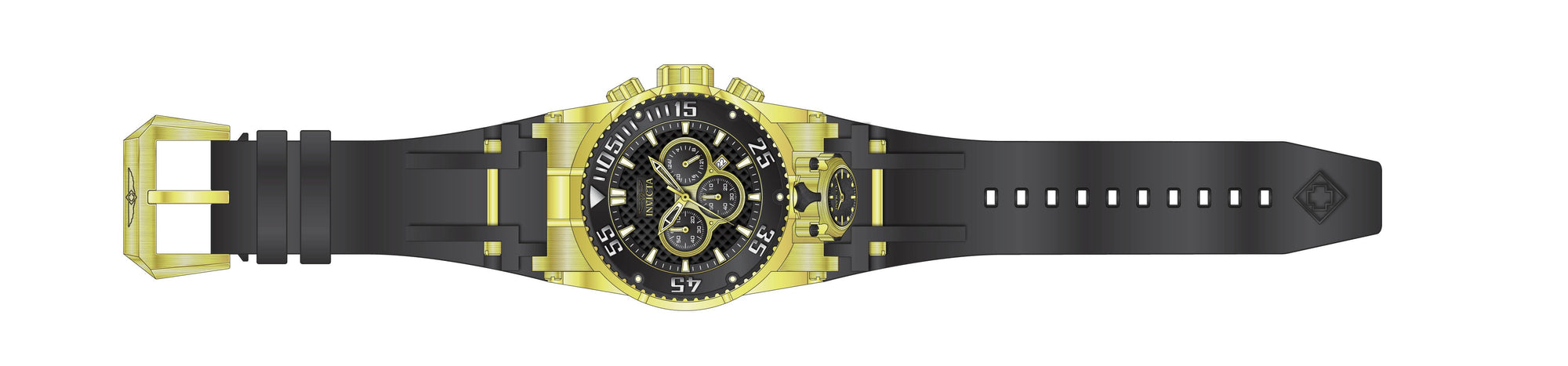 Band for Invicta 31444, Band Material: Stainless Steel, Silicone, Band Tone: Gold, Black, Band Size [mm]: 34, Band Length [mm]: 210, Buckle Type: Fold over safety. Please note that bands do not ship with spring bars or T bars. If you need these parts, please add them to your cart with the corresponding part sku.