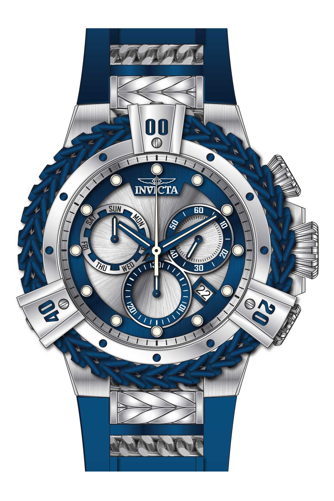 Band Material: Stainless Steel,Silicone, Band Tone: Steel,Blue, Band Size [mm]: 31, Band Length [mm]: 210, Buckle Type: Buckle . Please note that bands do not ship with spring bars or T bars. If you need these parts, please add them to your cart with the corresponding part sku.