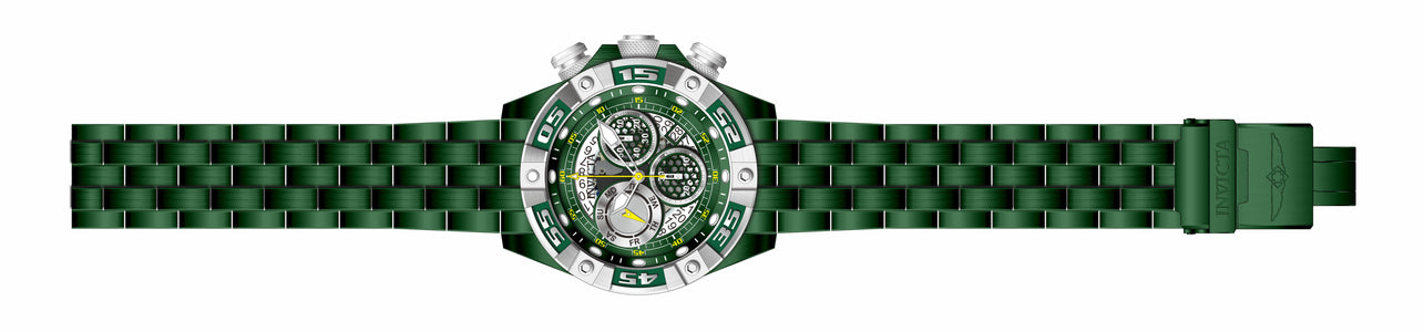 Band Material: Stainless Steel, Band Tone: Green, Band Size [mm]: 24, Band Length [mm]: 215, Buckle Type: Fold over safety . Please note that bands do not ship with spring bars or T bars. If you need these parts, please add them to your cart with the corresponding part sku.