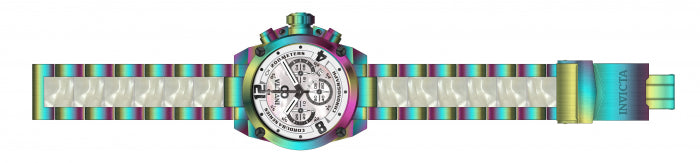 Band for Invicta Corduba 25393, Band Material: Stainless Steel, Resin, Band Color: Iridescent, White, Band Size (in mm): 24, Band Length (in mm): 220, Buckle Type: Diver, Clasp Type: Deployment, Safety. Please note that bands do not ship with spring bars or T bars. If you need these parts, please add them to your cart with the corresponding part sku.
