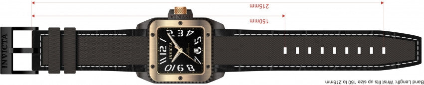 Band For Men Invicta Cuadro 1458, Band Material Leather, Band Color Black, Band Width 28 MM, Band Length 215 MM, Buckle Type Regular, Clasp Type Regular. Please note that bands do not ship with spring bars or T bars. If you need these parts, please add them to your cart with the corresponding part sku.