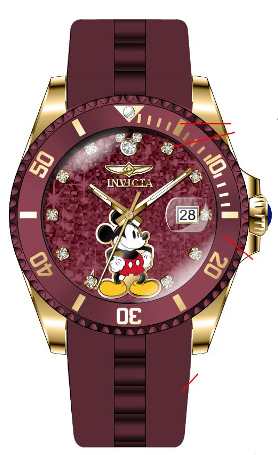 ["Band_Size_20MM","Disney Limited Edition","Gold","I41311","invicta_itg","Lady","Mickey Mouse","PF18004","Products_2021","Quartz","Red","Stainless Steel","Uni-directional","White"]
