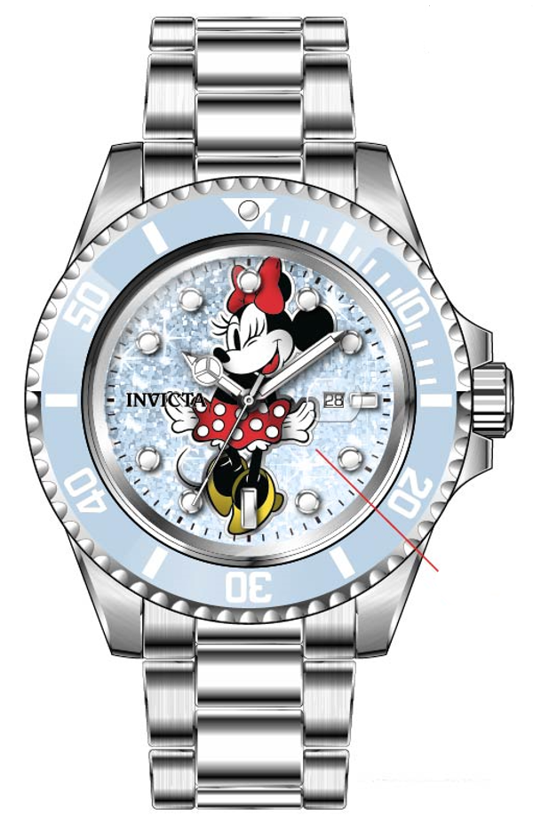 ["Aluminum","Band_Size_17MM","Blue","Disney Limited Edition","I41330","invicta_itg","Lady","Minnie Mouse","PF18014","Products_2021","Quartz","Silver","Stainless Steel","Uni-directional","White"]