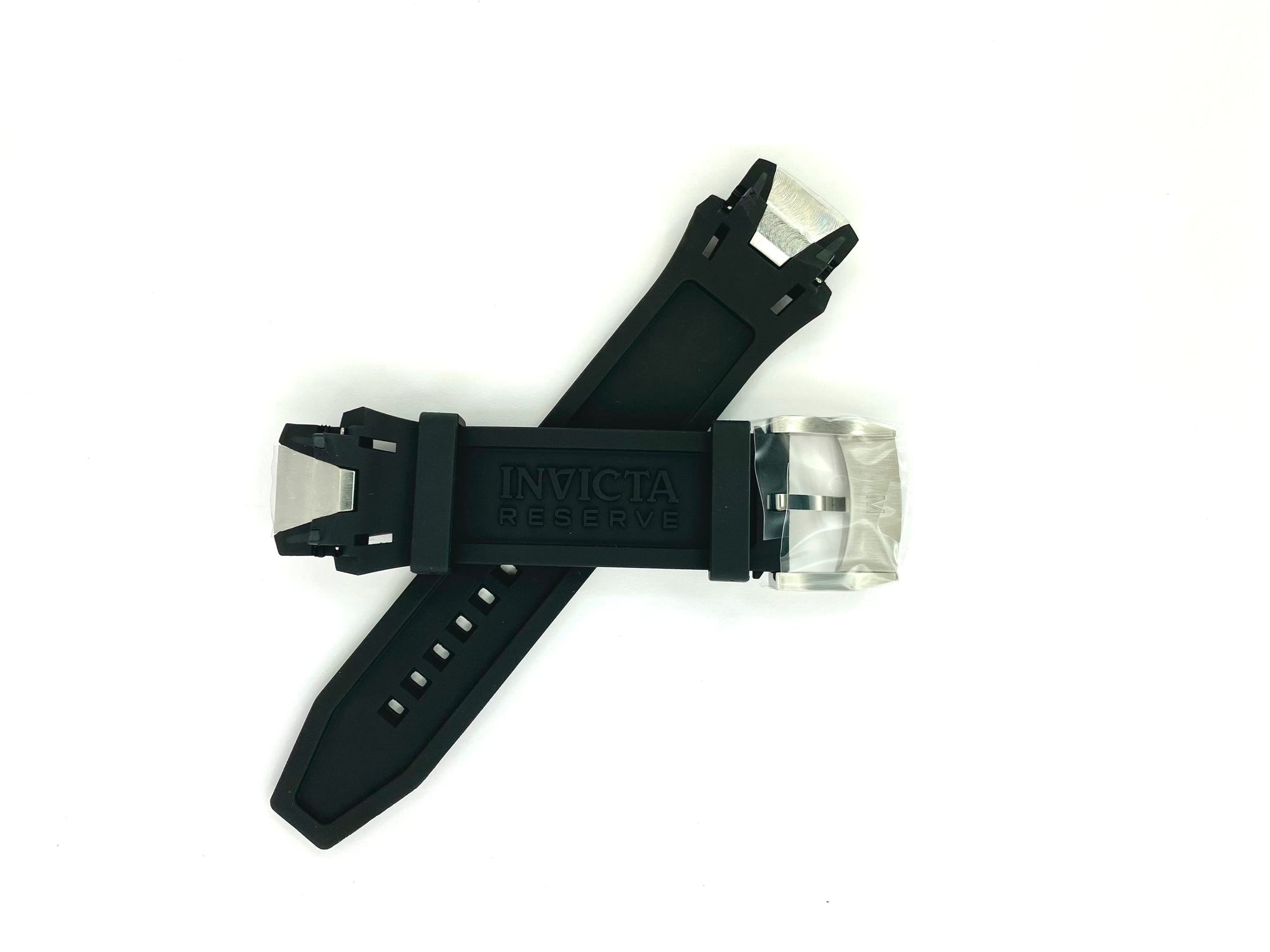 Band For Men Invicta Excursion 0651, Band Material Polyurethane, Band Color Black, Band Width 30 MM, Band Length 230 MM, Buckle Type Diver, Clasp Type Foldover, Buckle. Please note that bands do not ship with spring bars or T bars. If you need these parts, please add them to your cart with the corresponding part sku.