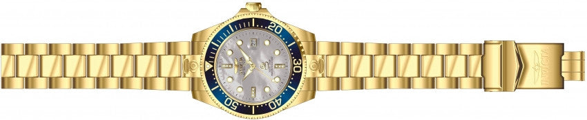 Band For Men Invicta Pro Diver 22028, Band Material Stainless Steel, Band Color Gold, Band Width 22 MM, Band Length 210 MM, Buckle Type Diver, Clasp Type Deployment, Safety. Please note that bands do not ship with spring bars or T bars. If you need these parts, please add them to your cart with the corresponding part sku.