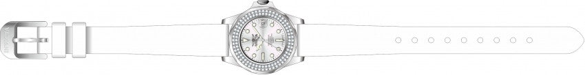 Band For Lady Invicta Pro Diver 22112, Band Material Silicone, Band Color White, Band Width 12 MM, Band Length 175 MM, Buckle Type Regular, Clasp Type Regular. Please note that bands do not ship with spring bars or T bars. If you need these parts, please add them to your cart with the corresponding part sku.