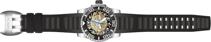 Band For Men Invicta Pro Diver 22127, Band Material Silicone, Band Color Black, Band Width 28 MM, Band Length 230 MM, Buckle Type Regular, Clasp Type Regular. Please note that bands do not ship with spring bars or T bars. If you need these parts, please add them to your cart with the corresponding part sku.