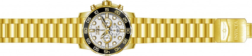 Band For Men Invicta Pro Diver 22229, Band Material Stainless Steel, Band Color Gold, Band Width 26 MM, Band Length 195 MM, Buckle Type Diver, Clasp Type Safety. Please note that bands do not ship with spring bars or T bars. If you need these parts, please add them to your cart with the corresponding part sku.