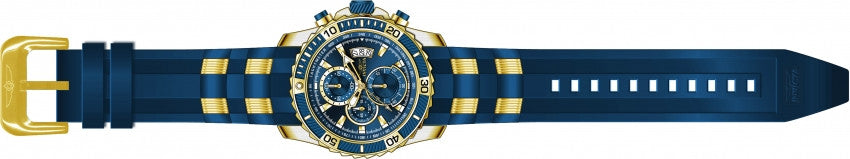 Band For Men Invicta Pro Diver 22431, Band Material Silicone, Polyurethane, Stainless Steel, Band Color Blue, Gold, Band Width 26 MM, Band Length 212 MM, Buckle Type Regular, Clasp Type Regular. Please note that bands do not ship with spring bars or T bars. If you need these parts, please add them to your cart with the corresponding part sku.