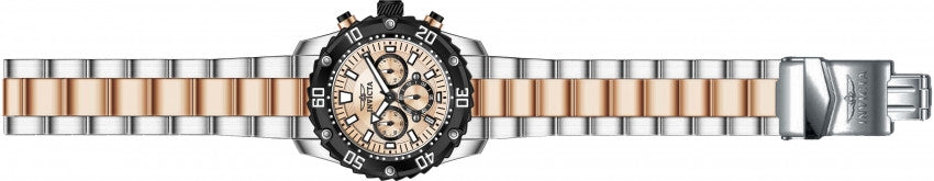 Band For Men Invicta Pro Diver 22520, Band Material Stainless Steel, Band Color Steel, Rose Gold, Band Width 24 MM, Band Length 195 MM, Buckle Type Diver, Clasp Type Safety. Please note that bands do not ship with spring bars or T bars. If you need these parts, please add them to your cart with the corresponding part sku.