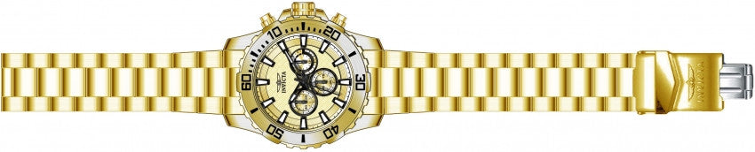 Band For Men Invicta Pro Diver 22547, Band Material Stainless Steel, Band Color Gold, Band Width 24 MM, Band Length 185 MM, Buckle Type Diver, Clasp Type Safety. Please note that bands do not ship with spring bars or T bars. If you need these parts, please add them to your cart with the corresponding part sku.