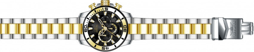 Band For Men Invicta Pro Diver 22588, Band Material Stainless Steel, Band Color Steel, Gold, Band Width 24 MM, Band Length 185 MM, Buckle Type Diver, Clasp Type Safety. Please note that bands do not ship with spring bars or T bars. If you need these parts, please add them to your cart with the corresponding part sku.