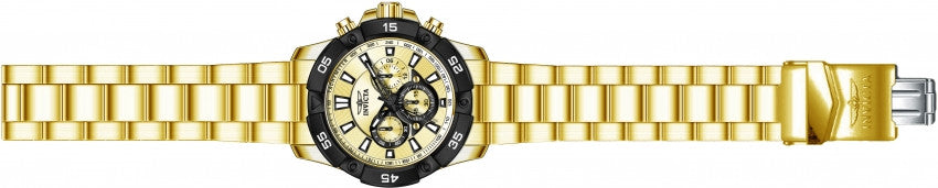 Band For Men Invicta Pro Diver 22789, Band Material Stainless Steel, Band Color Gold, Band Width 24 MM, Band Length 185 MM, Buckle Type Diver, Clasp Type Safety. Please note that bands do not ship with spring bars or T bars. If you need these parts, please add them to your cart with the corresponding part sku.