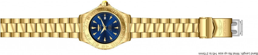 Band For Men Invicta Pro Diver 2305, Band Material Stainless Steel, Band Color Gold, Band Width 22 MM, Band Length 215 MM, Buckle Type Diver, Clasp Type Foldover, Safety. Please note that bands do not ship with spring bars or T bars. If you need these parts, please add them to your cart with the corresponding part sku.
