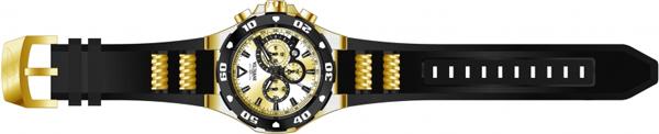 Band For Invicta Pro Diver 24682, Band Material Stainless Steel, Polyurethane, Band Color Gold, Black, Band Width 30 MM, Band Length 205 MM, Buckle Type Buckle, Clasp Type Buckle. Please note that bands do not ship with spring bars or T bars. If you need these parts, please add them to your cart with the corresponding part sku.