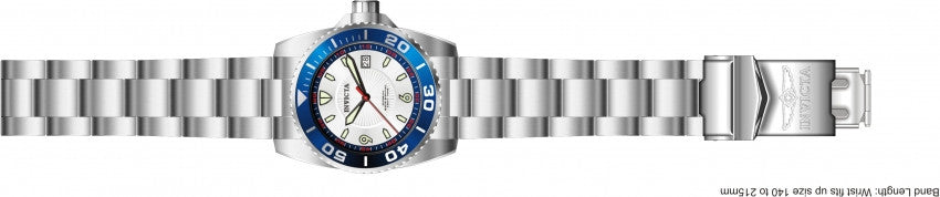 Band For Men Invicta Pro Diver 6054, Band Material Stainless Steel, Band Color Steel, Band Width 24 MM, Band Length 215 MM, Buckle Type Diver, Clasp Type Foldover, Safety. Please note that bands do not ship with spring bars or T bars. If you need these parts, please add them to your cart with the corresponding part sku.