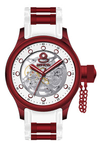 Band Material: Stainless Steel,Silicone, Band Tone: White,Red, Band Size [mm]: 26, Band Length [mm]: 225, Buckle Type: Buckle . Please note that bands do not ship with spring bars or T bars. If you need these parts, please add them to your cart with the corresponding part sku.