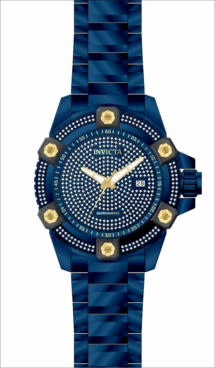Band Material: Stainless Steel, Band Tone: Blue, Band Size [mm]: 24, Band Length [mm]: 205, Buckle Type: Fold over safety . Please note that bands do not ship with spring bars or T bars. If you need these parts, please add them to your cart with the corresponding part sku.