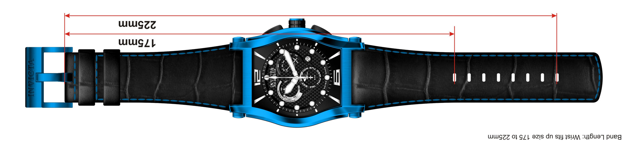Band For Men Invicta Reserve 0748, Band Material Stainless Steel or Leather, Band Color Blue, Black, Band Width 26 MM, Band Length 225 MM, Buckle Type Diver, Clasp Type Deployment, Safety. Please note that bands do not ship with spring bars or T bars. If you need these parts, please add them to your cart with the corresponding part sku.