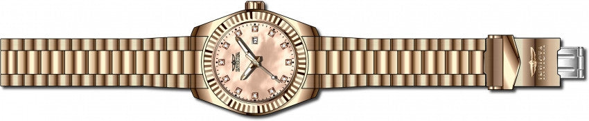 Band For Men Invicta Specialty 20356, Band Material Stainless Steel, Band Color Rose Gold, Band Width 22 MM, Band Length 215 MM, Buckle Type Diver, Clasp Type Safety. Please note that bands do not ship with spring bars or T bars. If you need these parts, please add them to your cart with the corresponding part sku.
