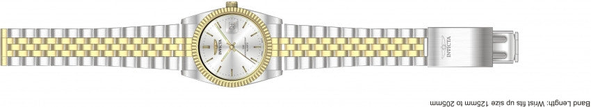Band For Men Invicta Specialty 8949, Band Material Stainless Steel, Band Color Gold, Steel, Band Width 20 MM, Band Length 200 MM, Buckle Type Diver, Clasp Type Foldover, Safety. Please note that bands do not ship with spring bars or T bars. If you need these parts, please add them to your cart with the corresponding part sku.