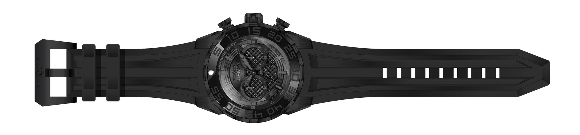 Band for Invicta Speedway 26309, Band Material: Silicone, Band Tone: Black, Band Size in mm: 32, Band length in mm: 195, Buckle Type: Regular, Clasp Type: Regular. Please note that bands do not ship with spring bars or T bars. If you need these parts, please add them to your cart with the corresponding part sku.