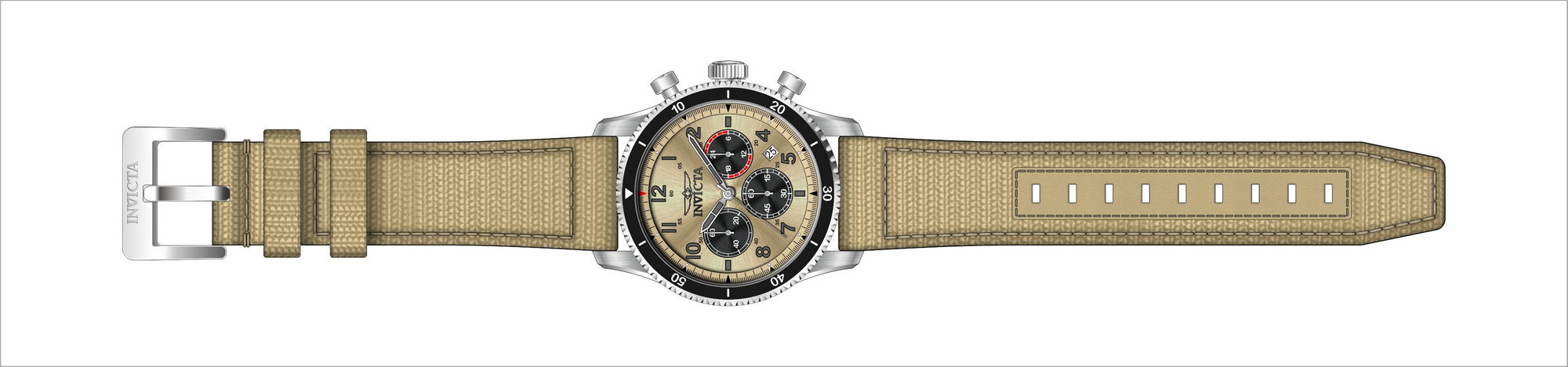 Band for Invicta 31287, Band Material: Nylon, Band Tone: Tan, Band Size [mm]: 22, Band Length [mm]: 220, Buckle Type: Buckle. Please note that bands do not ship with spring bars or T bars. If you need these parts, please add them to your cart with the corresponding part sku.