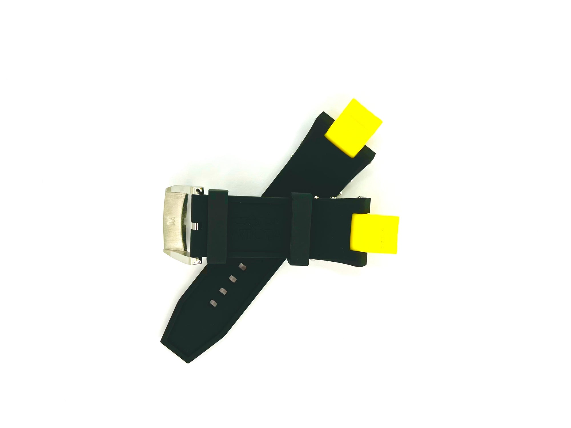 Band For Men Invicta Subaqua 0925, Band Material Silicone, Plastic, Band Color Black, Yellow, Band Width 28 MM, Band Length 200 MM, Buckle Type Regular, Clasp Type Regular. Please note that bands do not ship with spring bars or T bars. If you need these parts, please add them to your cart with the corresponding part sku.