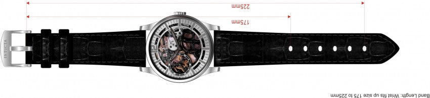 Band For Men Invicta Vintage 12403, Band Material Leather, Band Color Black, Band Width 24 MM, Band Length 210 MM, Buckle Type Regular, Clasp Type Regular. Please note that bands do not ship with spring bars or T bars. If you need these parts, please add them to your cart with the corresponding part sku.
