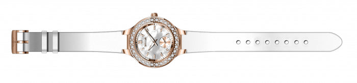 Band for Invicta Wildflower 24558, Band Material: Leather, Band Color: White, Band Size (in mm): 16, Band Length (in mm): 190, Buckle Type: Regular, Clasp Type: Regular. Please note that bands do not ship with spring bars or T bars. If you need these parts, please add them to your cart with the corresponding part sku.