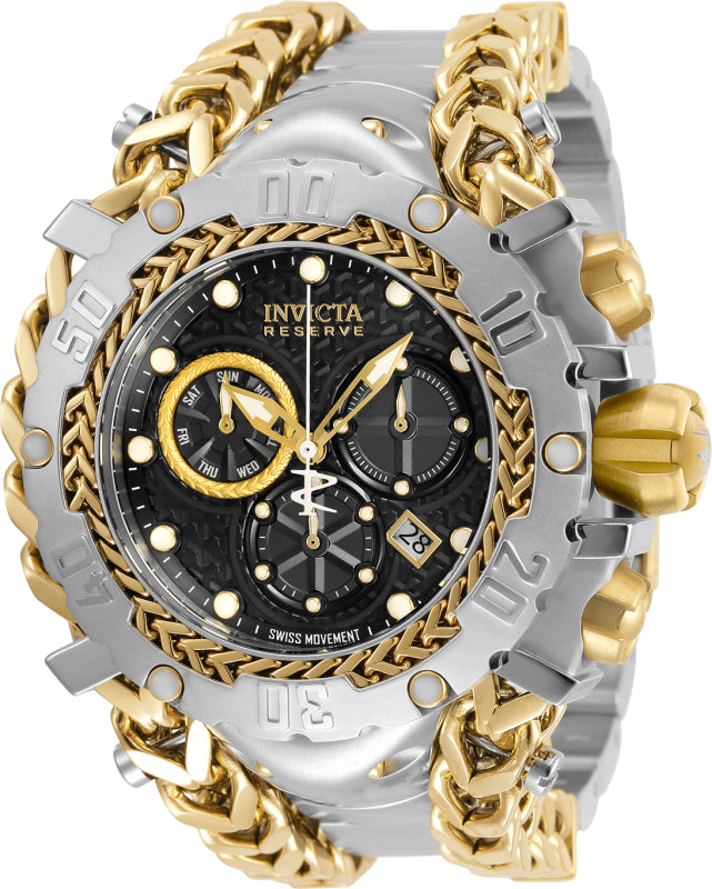 Band Material: Stainless Steel, Band Tone: Gold, Steel, Band Width: 41MM, Band Length: 210MM, Crown Type: Screw Down, Case Material: Stainless Steel, Case Tone: Steel, Gold, Case Size [mm]: 55.25, Color of Hands: Luminous, Gold, Crystal Type: Flame Fusion, Bezel Material: Stainless Steel, Dial Material: Metal, Dial Color: Gunmetal, Gold, Black .Purchasing these parts and having a non-authorized repair center open your watch voids all manufacturing warranties. Invicta cannot guarantee the quality standards of an altered timepiece, the standard 3-year limited warranty on Invicta timepieces shall be invalid if the timepiece is serviced at any time by an unauthorized repair center. This includes battery replacements, which must be done at an Invicta authorized repair center in order to maintain the eligibility of the warranty. Please follow the link below to learn more about Invicta's warranty.https://cdn.invictawatch.com/www/files/invicta-warranty-2018.pdf