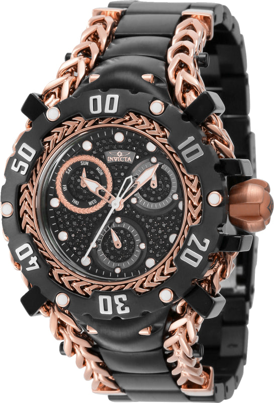 Band Material: Stainless Steel, Band Tone: Black, Rose Gold, Band Width: 28.0MM, Band Length: 185MM, Crown Type: Screw Down, Case Material: Stainless Steel, Case Tone: Steel, Black, Rose Gold, Case Size [mm]: 43.20, Color of Hands: Luminous, Rose Gold, Crystal Type: Flame Fusion, Bezel Material: Stainless Steel, Dial Material: Pave, Metal, Dial Color: Rose Gold, Black .Purchasing these parts and having a non-authorized repair center open your watch voids all manufacturing warranties. Invicta cannot guarantee the quality standards of an altered timepiece, the standard 3-year limited warranty on Invicta timepieces shall be invalid if the timepiece is serviced at any time by an unauthorized repair center. This includes battery replacements, which must be done at an Invicta authorized repair center in order to maintain the eligibility of the warranty. Please follow the link below to learn more about Invicta's warranty.https://cdn.invictawatch.com/www/files/invicta-warranty-2018.pdf