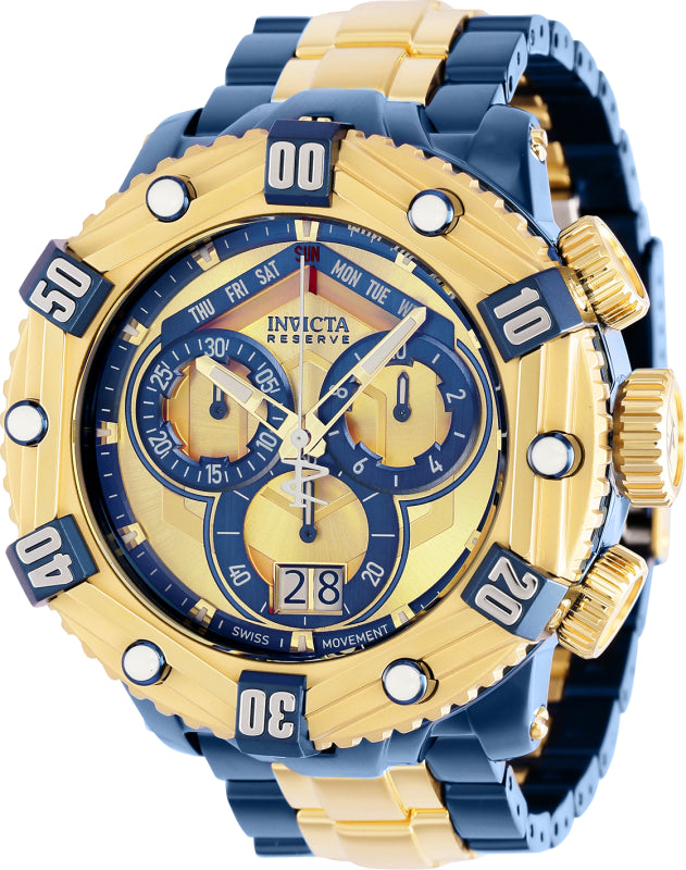 Band Material: Stainless Steel, Band Tone: Dark Blue, Gold, Band Width: 26.0MM, Band Length: 210MM, Crown Type: Screw Down, Case Material: Stainless Steel, Case Tone: Steel, Dark Blue, Gold, Case Size [mm]: 53.0, Color of Hands: Luminous, Gold, Crystal Type: Flame Fusion, Bezel Material: Stainless Steel, Dial Material: Metal, Dial Color: Gold, Blue .Purchasing these parts and having a non-authorized repair center open your watch voids all manufacturing warranties. Invicta cannot guarantee the quality standards of an altered timepiece, the standard 3-year limited warranty on Invicta timepieces shall be invalid if the timepiece is serviced at any time by an unauthorized repair center. This includes battery replacements, which must be done at an Invicta authorized repair center in order to maintain the eligibility of the warranty. Please follow the link below to learn more about Invicta's warranty.https://cdn.invictawatch.com/www/files/invicta-warranty-2018.pdf