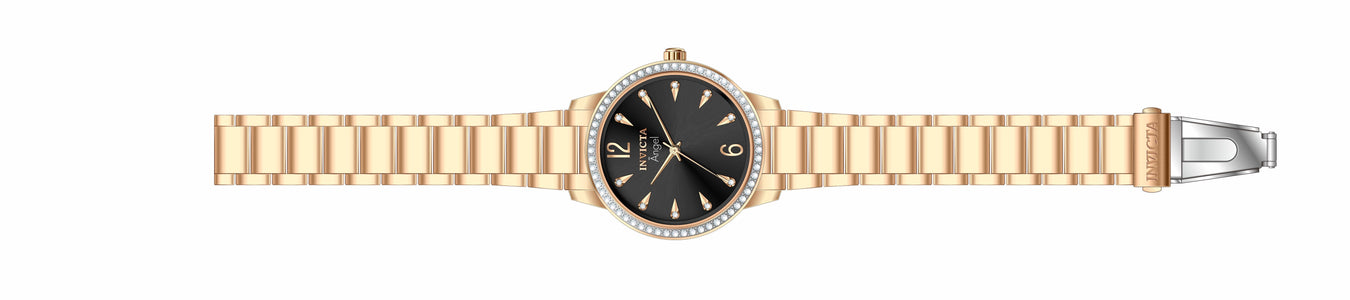 INVICTA Angel Lady 36mm Stainless Steel Rose Gold Black dial PC21J Quartz , Band Material: Stainless Steel, Band Tone: Rose Gold, Band Size [mm]: 16, Band Length [mm]: 190, Buckle Type: Fold over push button , Crown Type : Push, Case Material : Stainless Steel, Case Tone : Rose Gold, Case Size (mm) : 36, Case Back : Solid, Material of Hands : Metal, Color of Hands : Rose Gold, Crystal Type : Flame Fusion, Bezel Material : None, Dial Material : Metal, Dial Color : Black, Dial Pattern : Sun-ray Finish .Purchasing these parts and having a non-authorized repair center open your watch voids all manufacturing warranties. Invicta cannot guarantee the quality standards of an altered timepiece, the standard 3-year limited warranty on Invicta timepieces shall be invalid if the timepiece is serviced at any time by an unauthorized repair center. This includes battery replacements, which must be done at an Invicta authorized repair center in order to maintain the eligibility of the warranty. Please follow the link below to learn more about Invicta's warranty.https://cdn.invictawatch.com/www/files/invicta-warranty-2018.pdf
