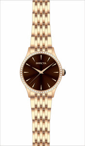 INVICTA Angel Lady 35mm Stainless Steel Rose Gold Brown dial PC21J Quartz , Band Material: Stainless Steel, Band Tone: Rose Gold, Band Size [mm]: 18, Band Length [mm]: 190, Buckle Type: Fold over push button , Crown Type : Push, Case Material : Stainless Steel, Case Tone : Rose Gold, Case Size (mm) : 35, Case Back : Solid, Material of Hands : Metal, Color of Hands : Rose Gold, Crystal Type : Flame Fusion, Bezel Material : None, Dial Material : Metal, Dial Color : Brown, Dial Pattern : Textured Pattern .Purchasing these parts and having a non-authorized repair center open your watch voids all manufacturing warranties. Invicta cannot guarantee the quality standards of an altered timepiece, the standard 3-year limited warranty on Invicta timepieces shall be invalid if the timepiece is serviced at any time by an unauthorized repair center. This includes battery replacements, which must be done at an Invicta authorized repair center in order to maintain the eligibility of the warranty. Please follow the link below to learn more about Invicta's warranty.https://cdn.invictawatch.com/www/files/invicta-warranty-2018.pdf