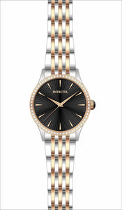 INVICTA Angel Lady 35mm Stainless Steel Rose Gold + Steel Black dial PC21J Quartz , Band Material: Stainless Steel, Band Tone: Steel,Rose Gold, Band Size [mm]: 18, Band Length [mm]: 190, Buckle Type: Fold over push button , Crown Type : Push, Case Material : Stainless Steel, Case Tone : Rose Gold,Steel, Case Size (mm) : 35, Case Back : Solid, Material of Hands : Metal, Color of Hands : Rose Gold, Crystal Type : Flame Fusion, Bezel Material : None, Dial Material : Metal, Dial Color : Black, Dial Pattern : Textured Pattern .Purchasing these parts and having a non-authorized repair center open your watch voids all manufacturing warranties. Invicta cannot guarantee the quality standards of an altered timepiece, the standard 3-year limited warranty on Invicta timepieces shall be invalid if the timepiece is serviced at any time by an unauthorized repair center. This includes battery replacements, which must be done at an Invicta authorized repair center in order to maintain the eligibility of the warranty. Please follow the link below to learn more about Invicta's warranty.https://cdn.invictawatch.com/www/files/invicta-warranty-2018.pdf
