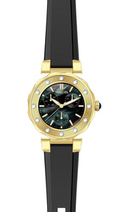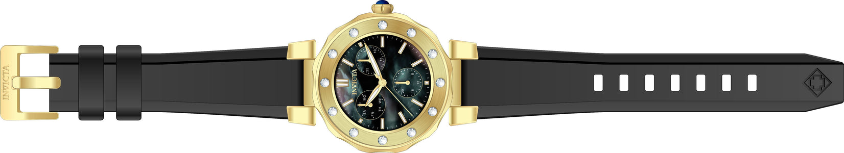 INVICTA Angel Lady 39mm Stainless Steel Gold Black dial VH68 Quartz , Band Material: Silicone, Band Tone: Black, Band Size [mm]: 20, Band Length [mm]: 210, Buckle Type: Buckle , Crown Type : Push, Case Material : Stainless Steel, Case Tone : Gold, Case Size (mm) : 39, Case Back : Solid, Material of Hands : Metal, Color of Hands : Gold,Luminous, Crystal Type : Flame Fusion, Bezel Material : Stainless Steel, Dial Material : Mother of Pearl, Dial Color : Black, Dial Pattern : None .Purchasing these parts and having a non-authorized repair center open your watch voids all manufacturing warranties. Invicta cannot guarantee the quality standards of an altered timepiece, the standard 3-year limited warranty on Invicta timepieces shall be invalid if the timepiece is serviced at any time by an unauthorized repair center. This includes battery replacements, which must be done at an Invicta authorized repair center in order to maintain the eligibility of the warranty. Please follow the link below to learn more about Invicta's warranty.https://cdn.invictawatch.com/www/files/invicta-warranty-2018.pdf