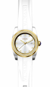 INVICTA Angel Lady 38mm Stainless Steel Gold + Steel Silver dial PC32A Quartz , Band Material: Silicone, Band Tone: White, Band Size [mm]: 20, Band Length [mm]: 190, Buckle Type: Buckle , Crown Type : Push, Case Material : Stainless Steel, Case Tone : Gold,Steel, Case Size (mm) : 38, Case Back : Solid, Material of Hands : Metal, Color of Hands : Gold,Luminous, Crystal Type : Mineral, Bezel Material : Stainless Steel, Dial Material : Metal, Dial Color : Silver, Dial Pattern : Sun-ray Finish .Purchasing these parts and having a non-authorized repair center open your watch voids all manufacturing warranties. Invicta cannot guarantee the quality standards of an altered timepiece, the standard 3-year limited warranty on Invicta timepieces shall be invalid if the timepiece is serviced at any time by an unauthorized repair center. This includes battery replacements, which must be done at an Invicta authorized repair center in order to maintain the eligibility of the warranty. Please follow the link below to learn more about Invicta's warranty.https://cdn.invictawatch.com/www/files/invicta-warranty-2018.pdf