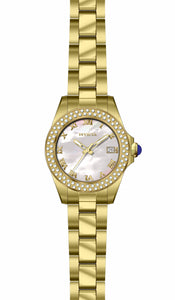 INVICTA Angel Lady 34mm Stainless Steel Gold White dial PC32A Quartz , Band Material: Stainless Steel, Band Tone: Gold, Band Size [mm]: 16, Band Length [mm]: 195, Buckle Type: Fold over safety , Crown Type : Push, Case Material : Stainless Steel, Case Tone : Gold, Case Size (mm) : 34, Case Back : Solid, Material of Hands : Metal, Color of Hands : Gold,Luminous, Crystal Type : Mineral, Bezel Material : Stainless Steel, Dial Material : Mother of Pearl, Dial Color : White, Dial Pattern : None .Purchasing these parts and having a non-authorized repair center open your watch voids all manufacturing warranties. Invicta cannot guarantee the quality standards of an altered timepiece, the standard 3-year limited warranty on Invicta timepieces shall be invalid if the timepiece is serviced at any time by an unauthorized repair center. This includes battery replacements, which must be done at an Invicta authorized repair center in order to maintain the eligibility of the warranty. Please follow the link below to learn more about Invicta's warranty.https://cdn.invictawatch.com/www/files/invicta-warranty-2018.pdf
