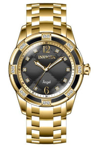 INVICTA Angel Lady 38mm Stainless Steel Gold Black dial PC21 Quartz , Band Material: Stainless Steel, Band Tone: Gold, Band Size [mm]: 20, Band Length [mm]: 175, Buckle Type: Fold over safety , Crown Type : Push, Case Material : Stainless Steel, Case Tone : Gold, Case Size (mm) : 38, Case Back : Solid, Material of Hands : Metal, Color of Hands : White,Gold, Crystal Type : Flame Fusion, Bezel Material : Stainless Steel, Dial Material : Metal, Dial Color : Black .Purchasing these parts and having a non-authorized repair center open your watch voids all manufacturing warranties. Invicta cannot guarantee the quality standards of an altered timepiece, the standard 3-year limited warranty on Invicta timepieces shall be invalid if the timepiece is serviced at any time by an unauthorized repair center. This includes battery replacements, which must be done at an Invicta authorized repair center in order to maintain the eligibility of the warranty. Please follow the link below to learn more about Invicta's warranty.https://cdn.invictawatch.com/www/files/invicta-warranty-2018.pdf