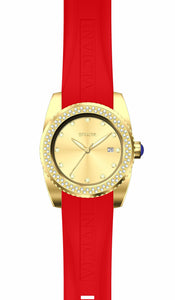 INVICTA Angel Lady 38mm Stainless Steel Gold Gold dial PC32A Quartz , Band Material: Silicone, Band Tone: Red, Band Size [mm]: 20, Band Length [mm]: 190, Buckle Type: Buckle , Crown Type : Push, Case Material : Stainless Steel, Case Tone : Gold, Case Size (mm) : 38, Case Back : Solid, Material of Hands : Metal, Color of Hands : Gold,Luminous, Crystal Type : Mineral, Bezel Material : Stainless Steel, Dial Material : Metal, Dial Color : Gold, Dial Pattern : Sun-ray Finish .Purchasing these parts and having a non-authorized repair center open your watch voids all manufacturing warranties. Invicta cannot guarantee the quality standards of an altered timepiece, the standard 3-year limited warranty on Invicta timepieces shall be invalid if the timepiece is serviced at any time by an unauthorized repair center. This includes battery replacements, which must be done at an Invicta authorized repair center in order to maintain the eligibility of the warranty. Please follow the link below to learn more about Invicta's warranty.https://cdn.invictawatch.com/www/files/invicta-warranty-2018.pdf