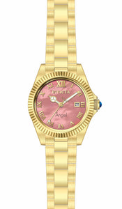 INVICTA Angel Lady 38mm Stainless Steel Gold Pink dial PC32A Quartz , Band Material: Stainless Steel, Band Tone: Gold, Band Size [mm]: 18, Band Length [mm]: 195, Buckle Type: Fold over safety , Crown Type : Push, Case Material : Stainless Steel, Case Tone : Gold, Case Size (mm) : 38, Case Back : Solid, Material of Hands : Metal, Color of Hands : Gold,Luminous, Crystal Type : Mineral, Bezel Material : Stainless Steel, Dial Material : Mother of Pearl, Dial Color : Pink, Dial Pattern : None .Purchasing these parts and having a non-authorized repair center open your watch voids all manufacturing warranties. Invicta cannot guarantee the quality standards of an altered timepiece, the standard 3-year limited warranty on Invicta timepieces shall be invalid if the timepiece is serviced at any time by an unauthorized repair center. This includes battery replacements, which must be done at an Invicta authorized repair center in order to maintain the eligibility of the warranty. Please follow the link below to learn more about Invicta's warranty.https://cdn.invictawatch.com/www/files/invicta-warranty-2018.pdf